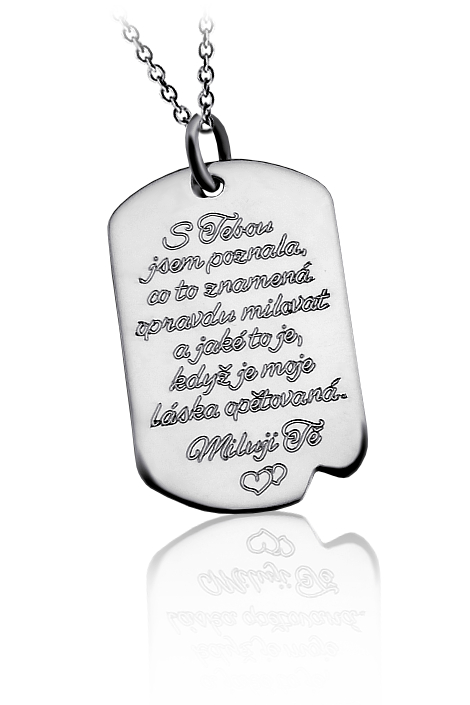 Elegantní přívěsek vyrobený ze stříbra v lesklé povrchové úpravě ryzosti 925/1000. K přívěsku už je zahrnuta dárková krabička, na kterou můžeme vyrýt delší věnování. Požadované rytí a věnování na krabičku nám napište do poznámky v objednávce ( třetí krok v košíku ).
