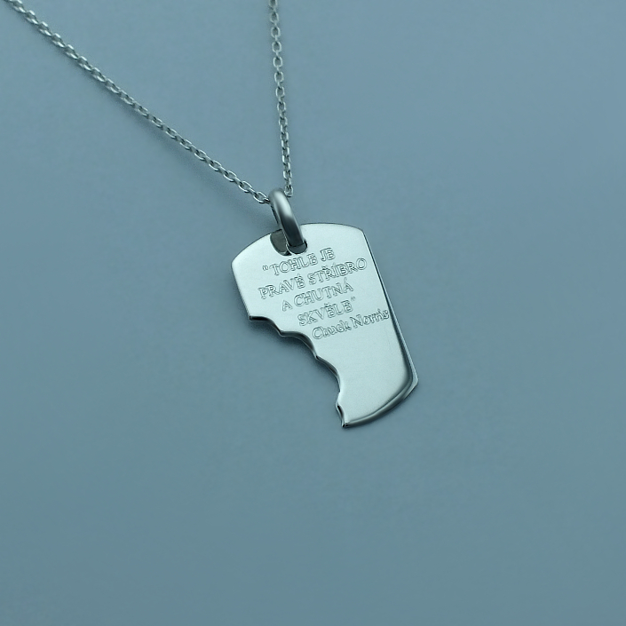 Přívěsek vyrobený ze stříbra v lesklé povrchové úpravě ryzosti 925/1000. Na zadni stranu lze vyrýt iniciál nebo vaše věnování. K přívěsku už je zahrnuta dárková krabička, na kterou můžeme vyrýt delší věnování. Požadované rytí a věnování na krabičku nám napište do poznámky v objednávce ( třetí krok v košíku ).