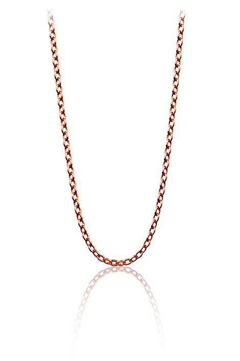 Řetízek vyrobený z oceli v lesklé povrchové úpravě a pokoven v růžové barvě .