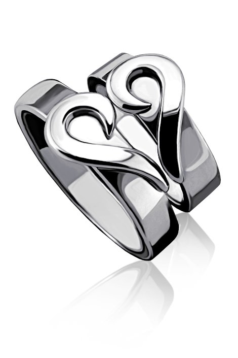 Stříbrné snubní prsteny ve tvaru dvou srdíček