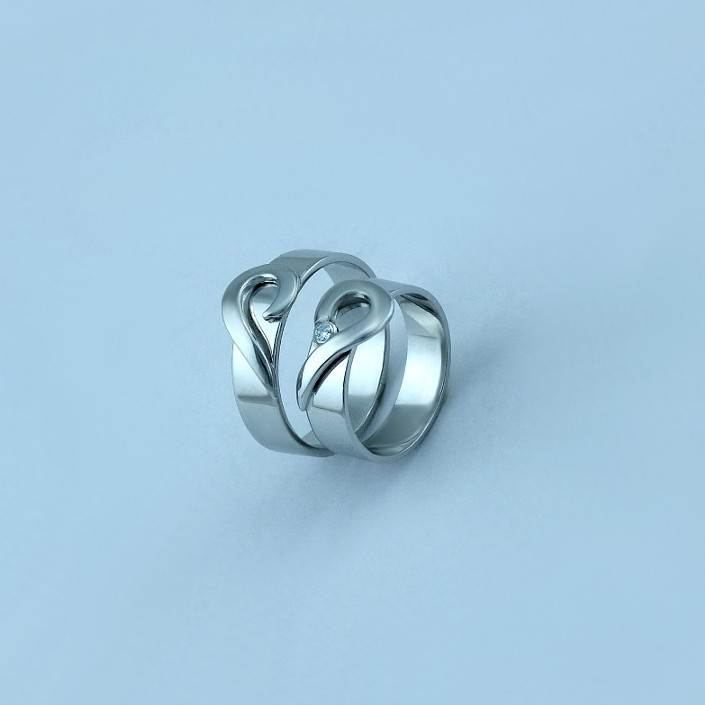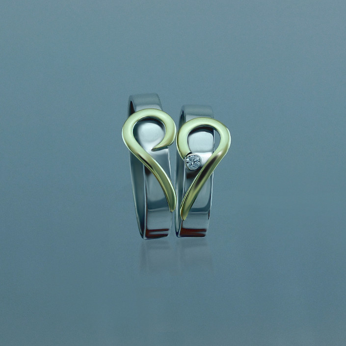Snubní prsteny vyrobeny ze stříbra ryzosti 925/1000 v lesklé povrchové úpravě. Zdobené půl srdíčkem u každého z prstýnku. Snubní prstýnky jsou v lesklé povrchové úpravě. Prsteny je možné vyrobit i z bílého a žlutého zlata, popřípadě jejich kombinace. Cena je udávána za oba prstýnky vyrobené ze stříbra. Velikost prstenu a rytí dovnitřku obroučky nám napište do poznámky v objednávce (třetí krok v košíku).