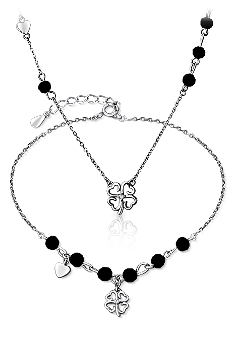 Stříbrná souprava náhrdelníku a náramku je zdobena čtyřlístkem a bílými zirkony (kameny jsou syntetické). Souprava je vhodná pro výjimečné a slavnostní příležitosti ale i na každodení nošení. Antioxidační povrchová úprava rhodiem, šperk má pak vzhled bílého zlata. Řetízek je součástí náhrdelníku s délkou 45 cm. V ceně soupravy je již zahrnuta dárková krabička, na kterou můžeme vyrýt vaše věnování. Požadované rytí na krabičku nám napište do poznámky v objednávce (třetí krok objednávky v košíku).