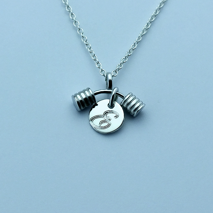 Přívěsek ve tvaru nakládací činky je vyrobený ze stříbra v lesklé povrchové úpravě. Ručně opracovaná činka je stříbrna v ryzosti 925/1000. Přívěsek s činkou je velmi detailně propracovaný a ideálním dárkem pro vyznavače fitness sportu. Rytí na kolečko je zcela na vás, na fotografii je pouze ilustrativní vzor. Vzhledem k menší velikosti destičky doporučeujeme např. iniciály, jméno nebo datum. Délka textu by měla být maximálně 6 znaků (číslice, písmena, symboly)  Veškeré rytí na kolečko je už zahrnuto v ceně přívěsku. Požadovanou rytinu nám napište do poznámky v objednávce ( třetí krok v košíku ).
