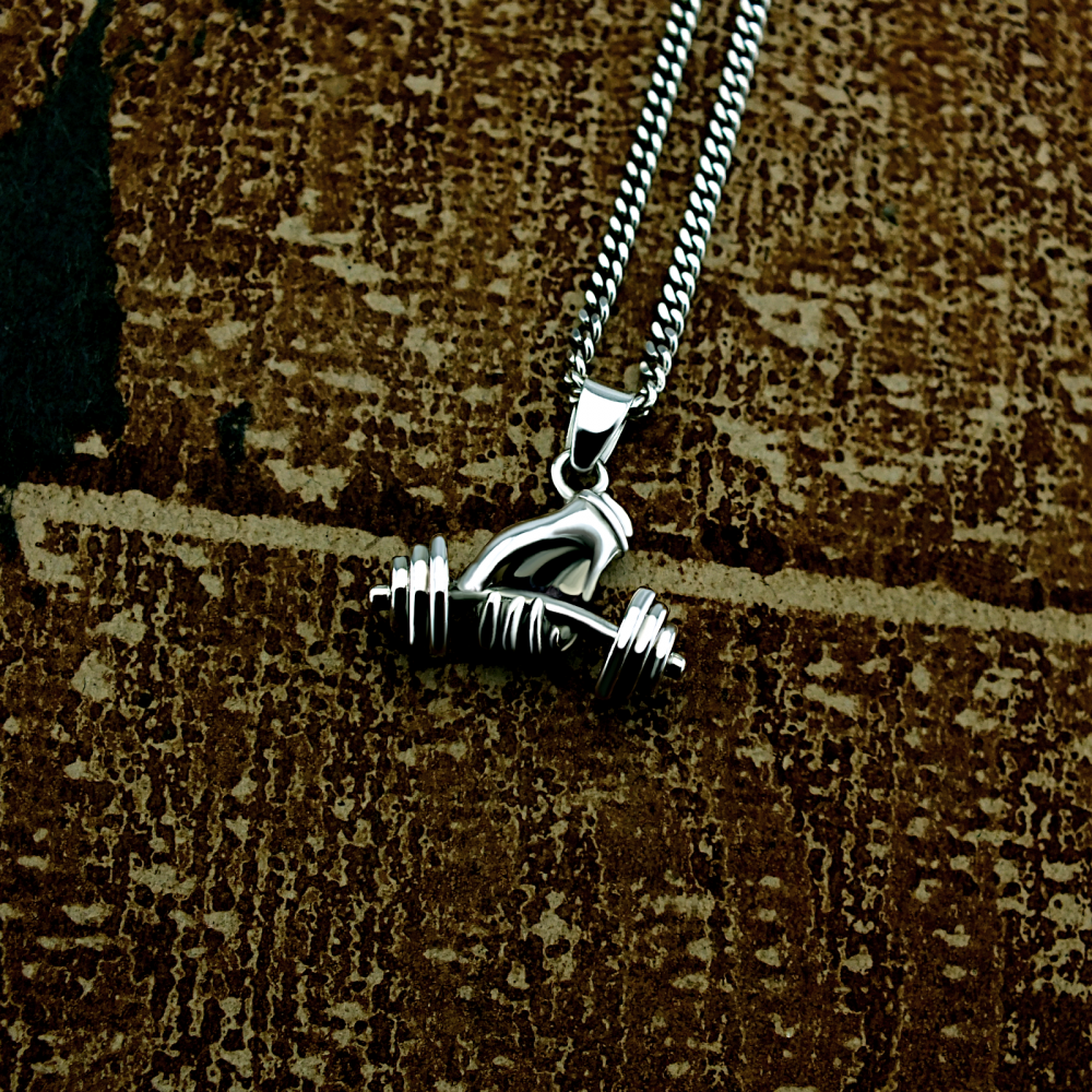 Přívěsek ve tvaru činky vyrobený ze stříbra v lesklé povrchové úpravě. Stříbrnou činku vyrábíme i z bíleho a žlutého zlata (cenu vám sdělíme na požádání).