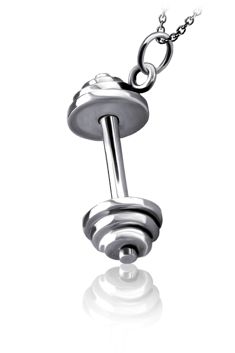 Přívěsek ve tvaru velké nakládací činky vyrobený ze stříbra ryzosti 925/1000. Ručně opracovaná činka je v lesklé povrchové úpravě. Stříbrnou činku vyrábíme i z bíleho a žlutého zlata (cenu vám sdělíme na požádání).