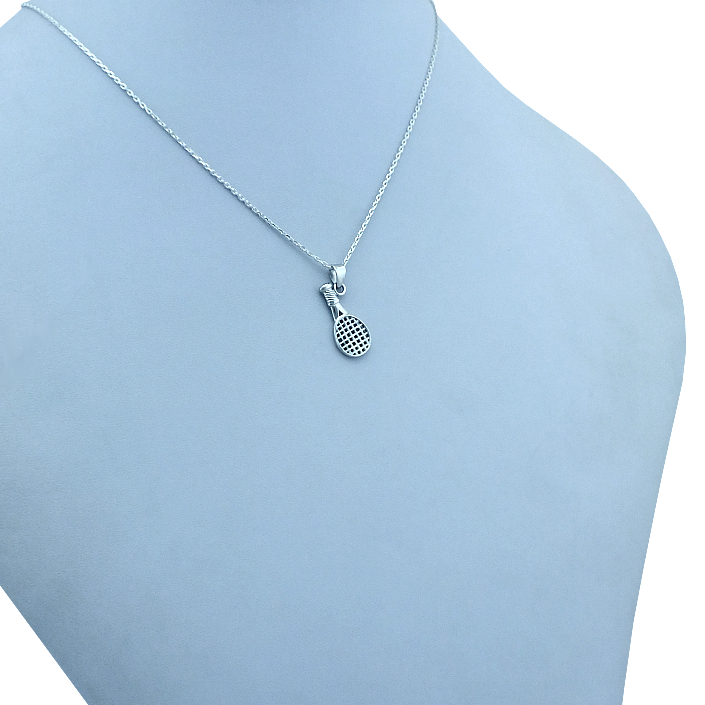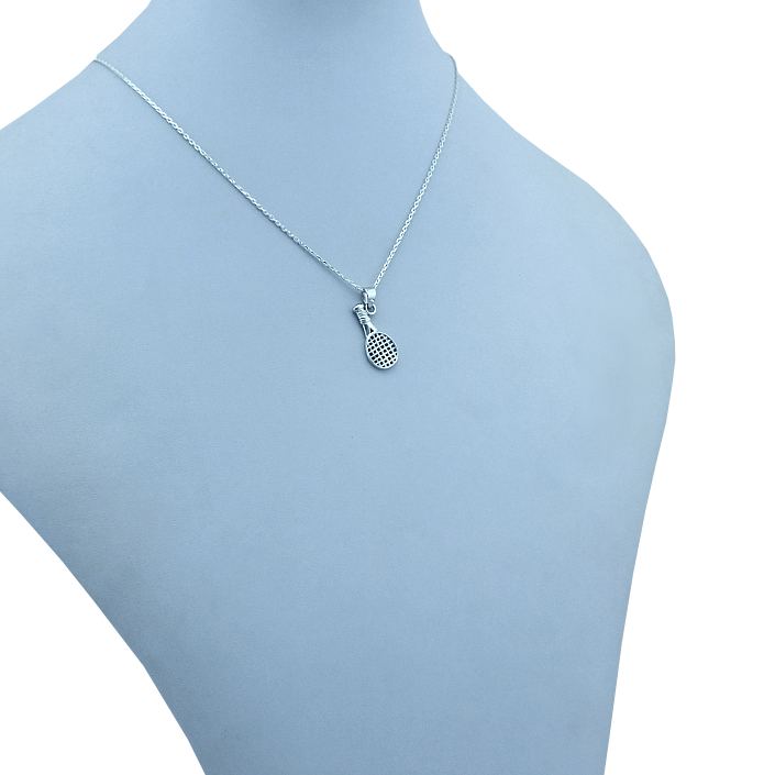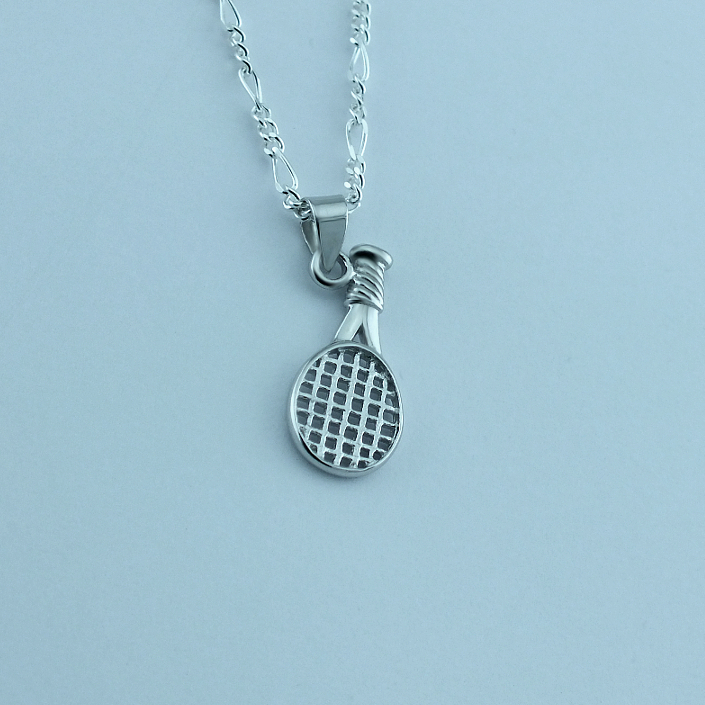 Přívěsek tenisová raketa je vyroben ze stříbra v lesklé povrchové úpravě. Tento přívěsek je velmi detailně propracovaný a je vhodný jako dárek pro fanoušky nebo hráče tohoto sportu. Délka rakety je 26 mm a jeho šířka je 12 mm. Průměr očka na řetízek je 7 mm ale v případě potřeby vám ho upravíme. Tenisovou raketu můžeme vyrobit i ze žlutého, popřípadě bílého zlata (cena je dle aktuálního prodeje zlata a zdělíme vám ji na požádání).