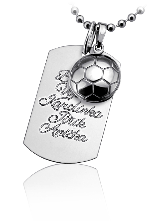 Fotbalový míč s destičkou je elegantní stříbrný přívěsek ryzosti 925/1000 v lesklé povrchové úpravě. V ceně přívěsku je již zahrnuta dárková krabička, na kterou můžeme vyrýt vaše věnování. Na destičku pod míčem je možné vyrýt jméno či krátké věnování. Požadované rytí na destičku a krabičku nám napište do poznámky v objednávce (třetí krok objednávky v košíku).