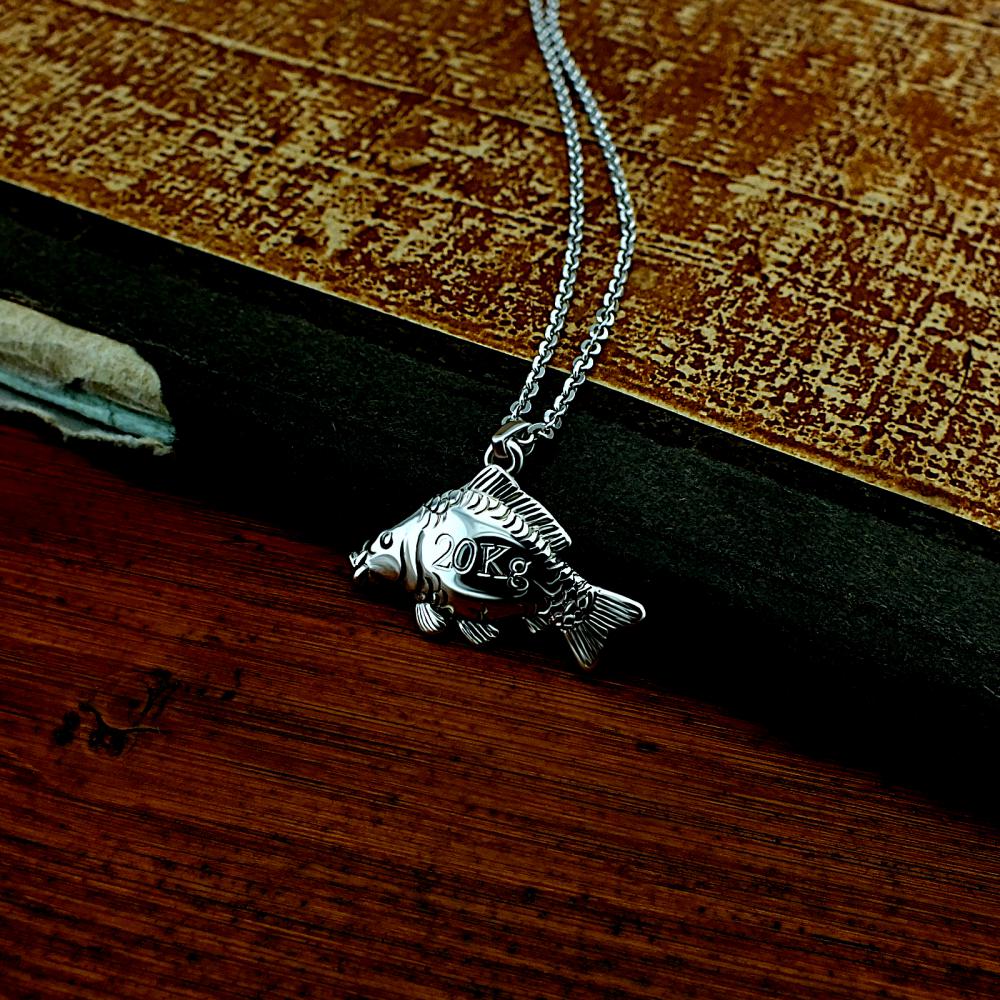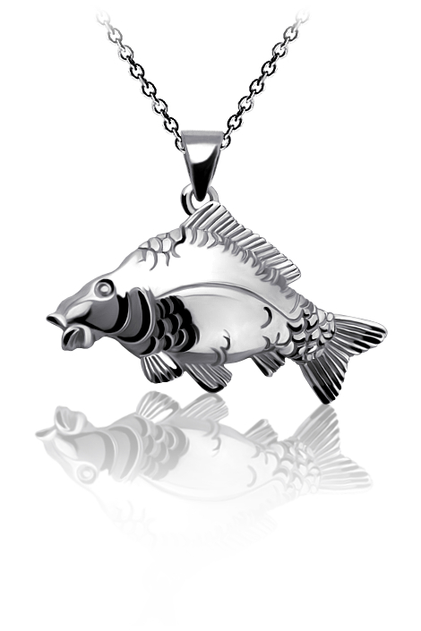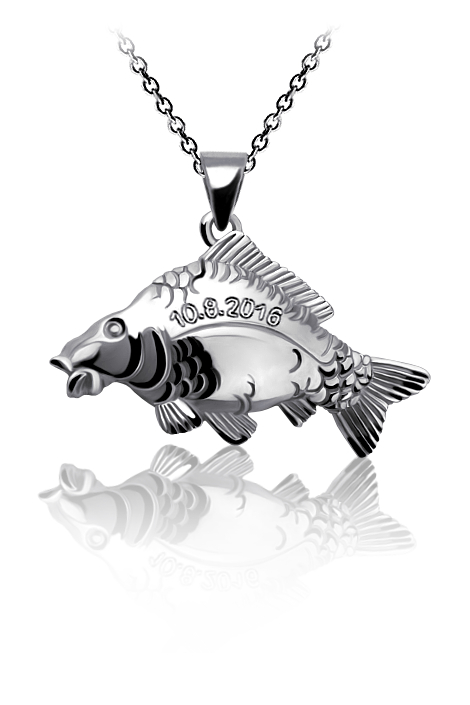 Přívěsek kapr je vyrobený ze stříbra ryzosti 925/1000 v lesklé povrchové úpravě. Rytí na bříško je zcela na vás, na fotografii je pouze ilustrativní vzor. Vzhledem k menší velikosti přívěšku doporučujeme např. iniciály, jméno nebo datum. Délka textu by měla být maximálně 6-8 znaků (číslice, písmena, symboly). Kapr je včetně stříbrného řetízku v délce 50cm. Veškeré rytí na kapra je už zahrnuto v ceně přívěsku. Požadovanou rytinu nám napište do poznámky v objednávce (třetí krok v košíku).