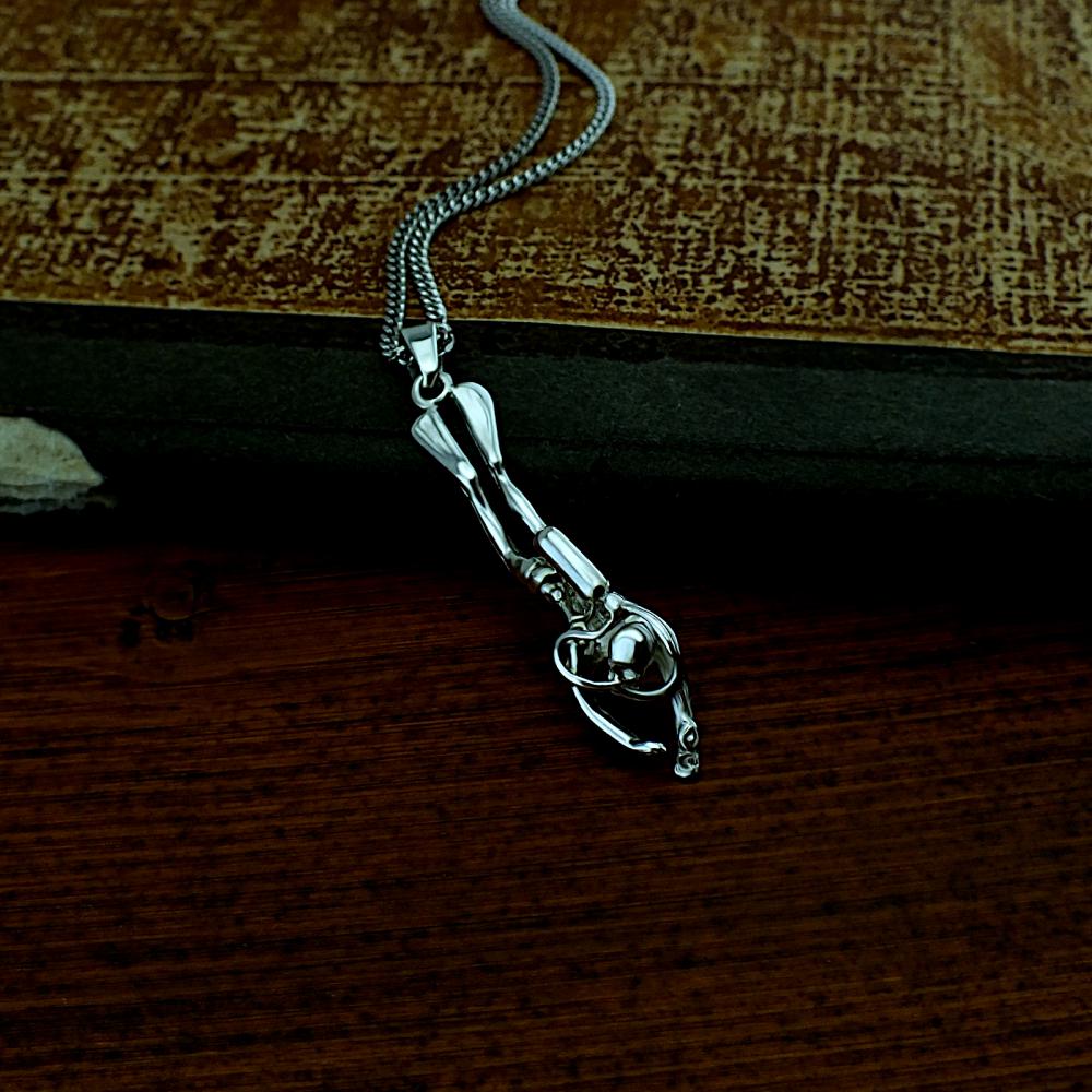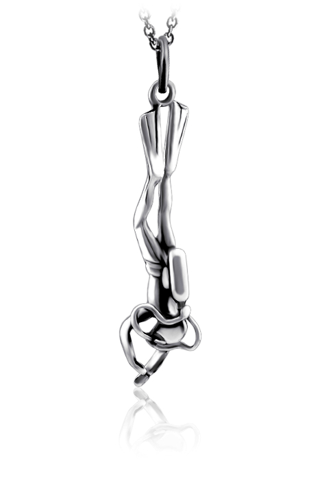 Stříbrný přívěsek zdobený potápěčem. Přívěsek potápěče je vyrobený ze stříbra ryzosti 925/1000 v lesklé povrchové úpravě.Tento přívěsek je velmi detailně propracovaný a je vhodný jako dárek pro fanoušky tohoto sportu. Přívěsek potápěče můžeme vyrobit i ze žlutého, popřípadě bílého zlata (cena je dle aktuálního prodeje zlata a zdělíme vám ji na požádání).