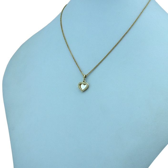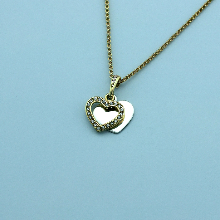 Přívěsek je vyrobený ze žlutého zlata ryzosti 585/1000 a zdobený spodním srdíčkem z bílého zlata. Rytí jména nebo krátkého věnování je už v ceně přívěsku. Srdíčko je v lesklé povrchové úpravě a je možné ho vyrobit i celé z bílého zlata. Ke zlatému přívěsku je už zahrnuta dárková krabička na kterou můžeme vyrýt delši věnování. Požadovanou rytinu nám napište do poznámky v objednávce (třetí krok v košíku).