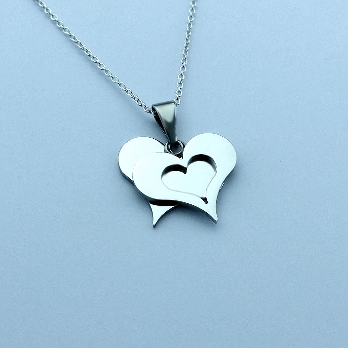 Přívěsek srdíčko je vyrobený z ocele v lesklé povrchové úpravě. Dámský přívěsek je zdobený dvěmi leštěným srdíčky. Rytí na srdíčku je zcela na vás, na fotografii je pouze ilustrativní vzor. Na zadní stranu můžeme vyrýt další text dle vašeho přání. Veškeré rytí na srdíčko je už zahrnuto v ceně přívěsku. Požadovanou rytinu nám napište do poznámky v objednávce (třetí krok v košíku).