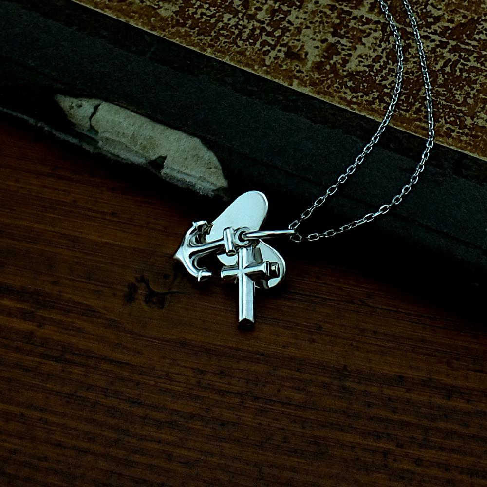 Přívěsek se skládá ze srdíčka, symbolizující lásku, křížku který je symbolem víry a kotvy která představuje naději.