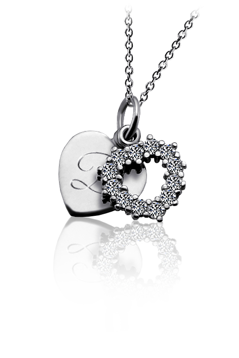 Přívěsek je vyroben ze stříbra a zdobený srdíčkem ze zirkonů. Stříbrné srdíčko je ryzosti 925/1000 v lesklé povrchové úpravě. Rytí jména nebo krátkého věnování je už v ceně přívěsku. Požadovanou rytinu na spodní srdíčko nám napište do poznámky v objednávce (třetí krok v košíku).