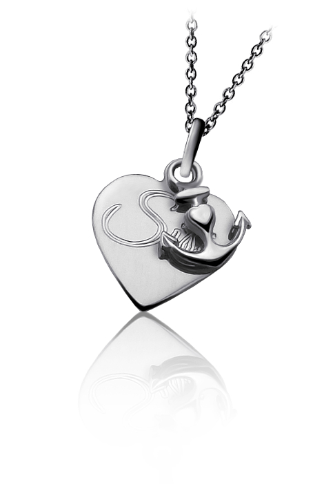 Stříbrný přivěsek zdobený srdíčkem a křížkem s kotvou. Vyrobený ze stříbra v lesklé povrchové úpravě. Přívěsek se skládá ze srdíčka, symbolizující lásku, křížku který je symbolem víry a kotvy která představuje naději. Rytí písmena nebo iniciálu je už v ceně přívěsku. Požadovanou rytinu nám napište do poznámky v objednávce (třetí krok v košíku).