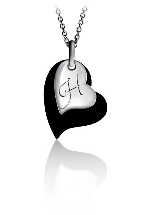 Přívěsek vyrobený ze stříbra a zdobený syntetickým onyxem ve tvaru srdíčka. Rytí písmena nebo iniciálu je už v ceně stříbrného přívěsku. Rytí na srdíčko je zcela na vás, na fotografii je pouze ilustrativní vzor. Požadovanou rytinu nám napište do poznámky v objednávce (třetí krok v košíku).