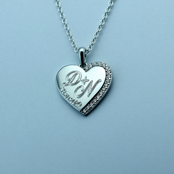 Přívěsek je vyrobený ze stříbra ryzosti 925/1000 a zdobený vlastním rytím. Rytí jména nebo iniciálu je už v ceně stříbrného přívěsku. K přívěsku je zahrnuta dárková krabička na kterou můžeme vyrýt delši věnování. Požadovanou rytinu nám napište do poznámky v objednávce (třetí krok v košíku).