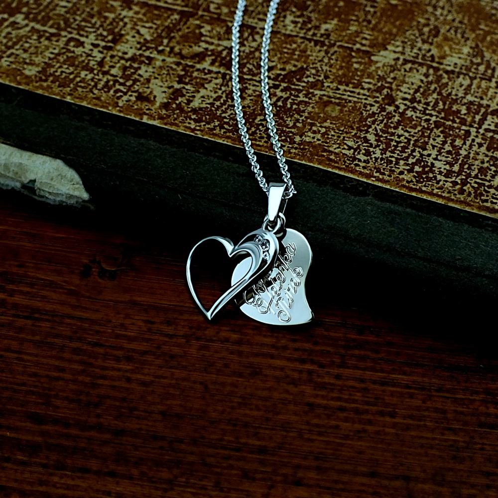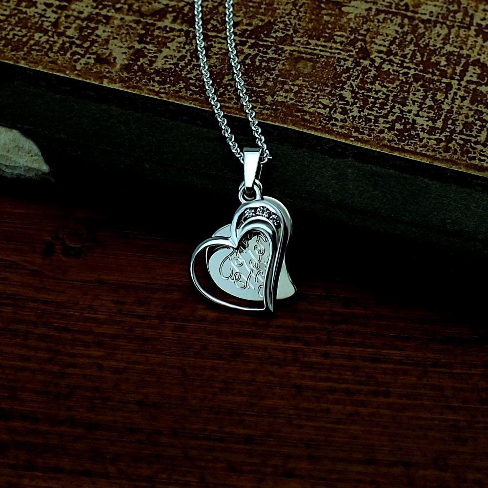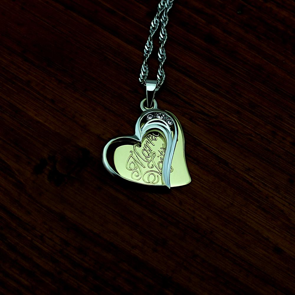 Přívěsek vyrobený z bílého zlata ryzosti 585/1000 a zdobený srdíčkem ze zirkonů. Rytí jména nebo krátkého věnování je už v ceně přívěsku. Srdíčko je v lesklé povrchové úpravě a je možné ho vyrobit i ze žlutého zlata, popřípadě jejich kombinace (cena zůstává stejná). Ke zlatému přívěsku je už zahrnuta dárková krabička na kterou můžeme vyrýt delší věnování. Požadovanou rytinu nám napište do poznámky v objednávce (třetí krok v košíku).