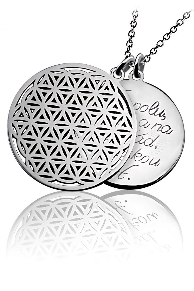 Přívěsek Květ Života je elegantní ocelový přívěsek v lesklé povrchové úpravě. V ceně přívěsku je již zahrnuta dárková krabička, na kterou můžeme vyrýt delší text. Na kolečko u květu je možné vyrýt jména či věnování. Požadované rytí na Květ Života a krabičku nám napište do poznámky v objednávce (třetí krok objednávky v košíku).