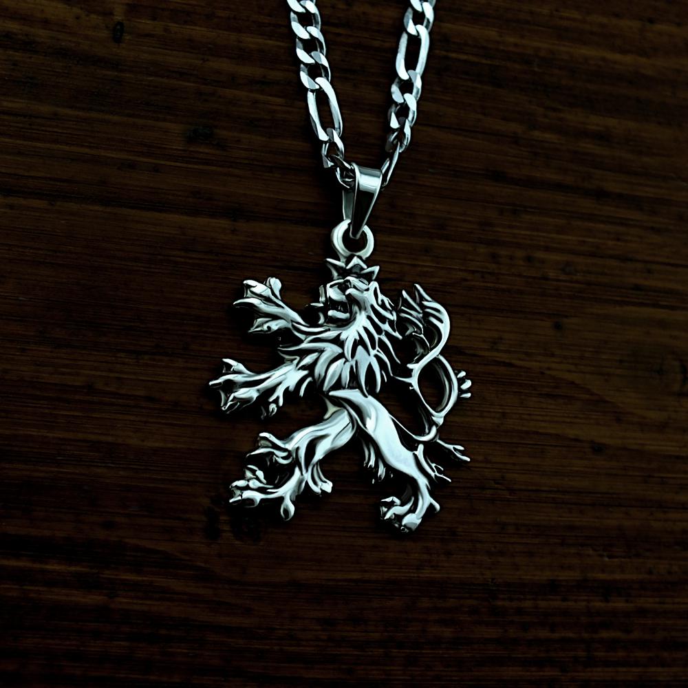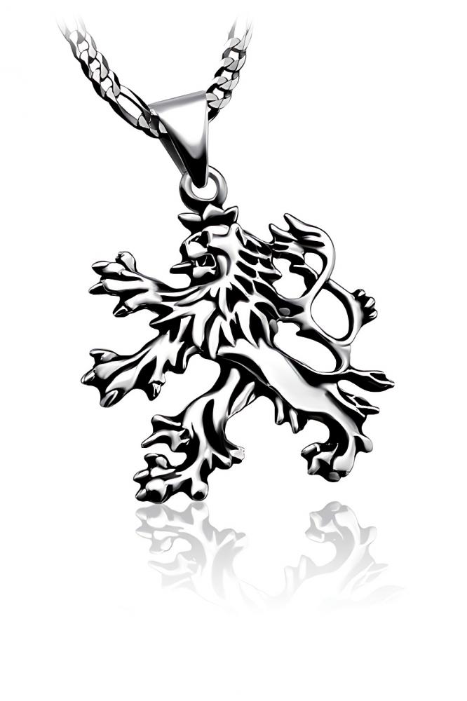 Přívěsek ve tvaru českého lva je vyrobený ze stříbra ryzosti 925/1000. Detailní a ručně opracovaný přívěsek ve tvaru českého Lva pro vlastence. Přívěsek je v lesklé povrchové úpravě a následně patinován (prohlubně jsou začerněny), to zvýrazňuje plastičnost přívěsku. Vhodný na černou kůži nebo pryž.