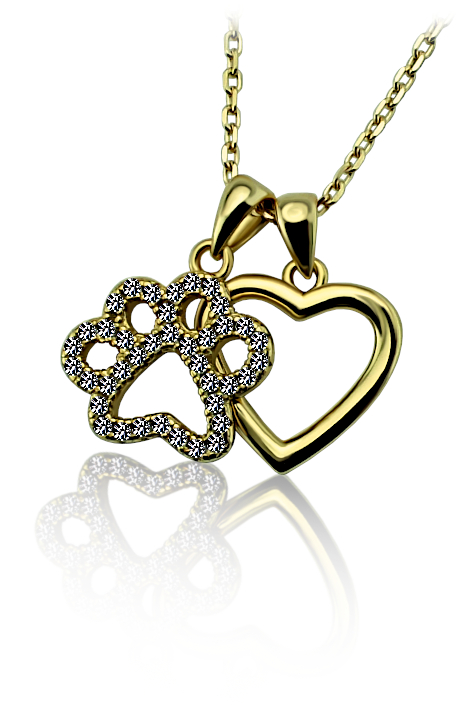 Přívěsek psí tlapka je vyrobený ze stříbra ryzosti 925/1000 v zlacené povrchové úpravě. Psí tlapka je včetně stříbrného řetízku v délce 45cm.