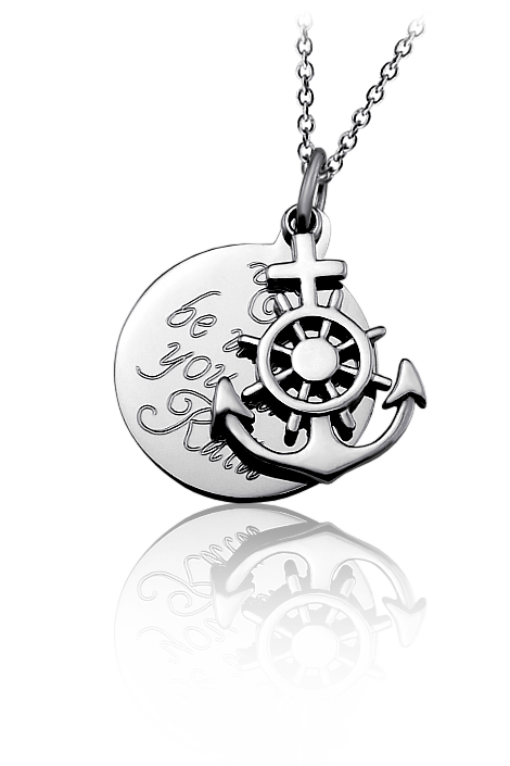 Přívěsek kotva s kormidlem je vyrobený ze stříbra ryzosti 925/1000 v lesklé povrchové úpravě. Rytí na kolečko je zcela na vás, na fotografii je pouze ilustrativní vzor. Kolečko pod přívěskem je velikosti 2cm a proto lze vyrýt i delší věnování, jméno, datum. Veškeré rytí na kolečko je už zahrnuto v ceně přívěsku. Požadovanou rytinu nám napište do poznámky v objednávce ( třetí krok v košíku ).