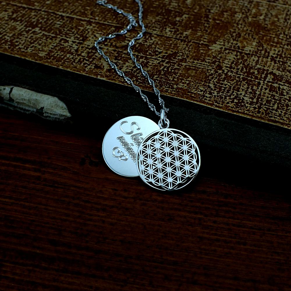 Přívěsek Květ Života je elegantní stříbrný přívěsek ryzosti 925/1000 v lesklé povrchové úpravě. V ceně přívěsku je již zahrnuta dárková krabička, na kterou můžeme vyrýt delší text. Na kolečko pod květem je možné vyrýt jména či věnování. Požadované rytí na Květ Života a krabičku nám napište do poznámky v objednávce (třetí krok objednávky v košíku).