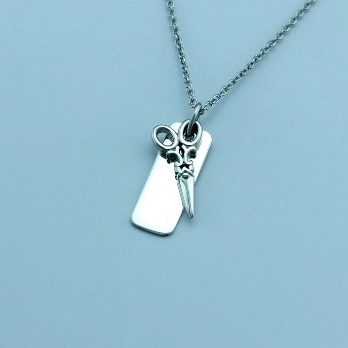 Nůžky a destičkou je elegantní stříbrný přívěsek ryzosti 925/1000 v lesklé povrchové úpravě. V ceně přívěsku je již zahrnuta dárková krabička, na kterou můžeme vyrýt vaše věnování. Na destičku pod nůžkami je možné vyrýt jména či krátké věnování a to z obou stran. Požadované rytí na destičku a krabičku nám napište do poznámky v objednávce (třetí krok objednávky v košíku).