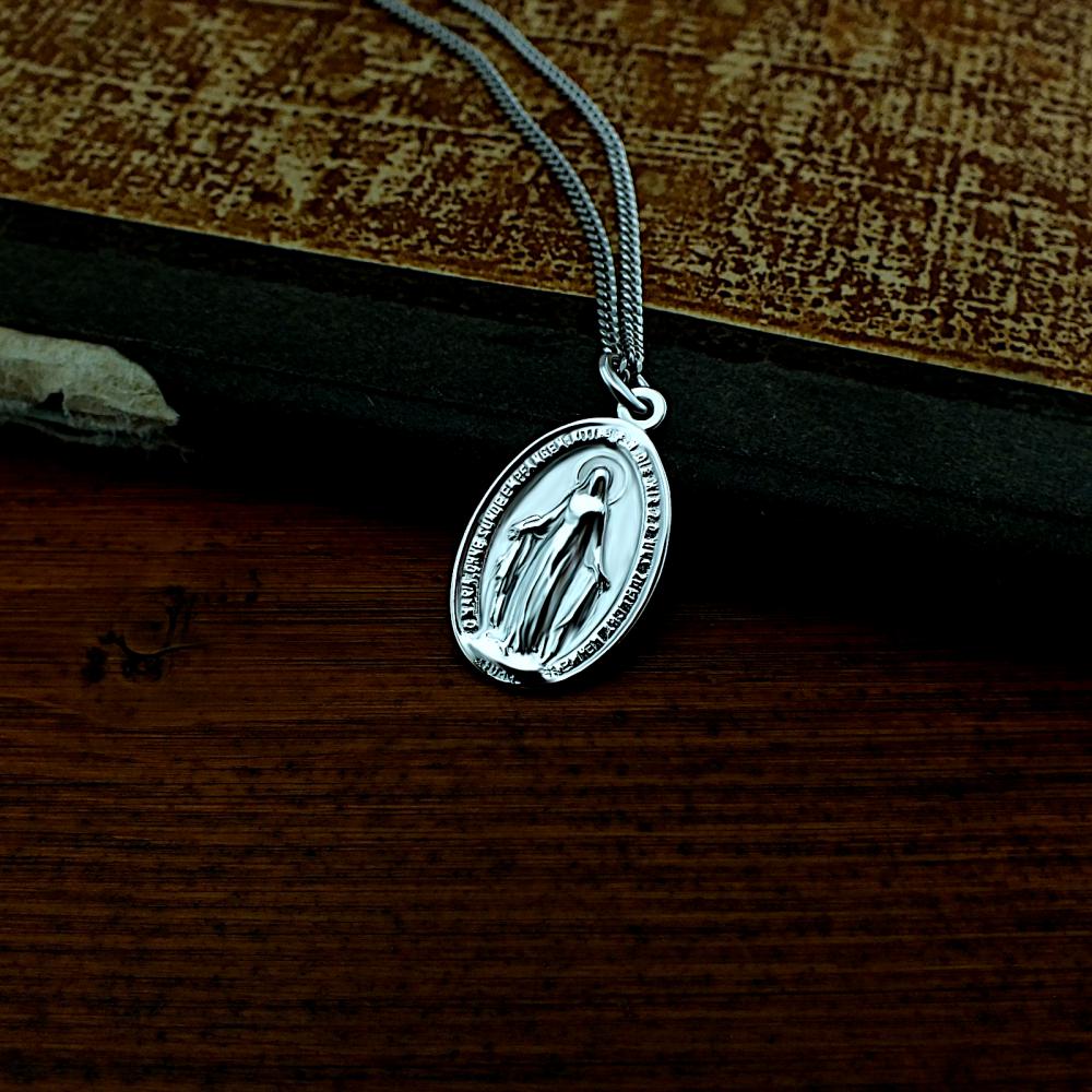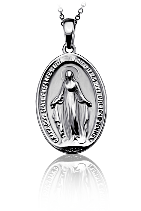 Stříbrný oboustranný přívěsek Panna Marie je vyroben ze stříbra rytosti 925/1000.
