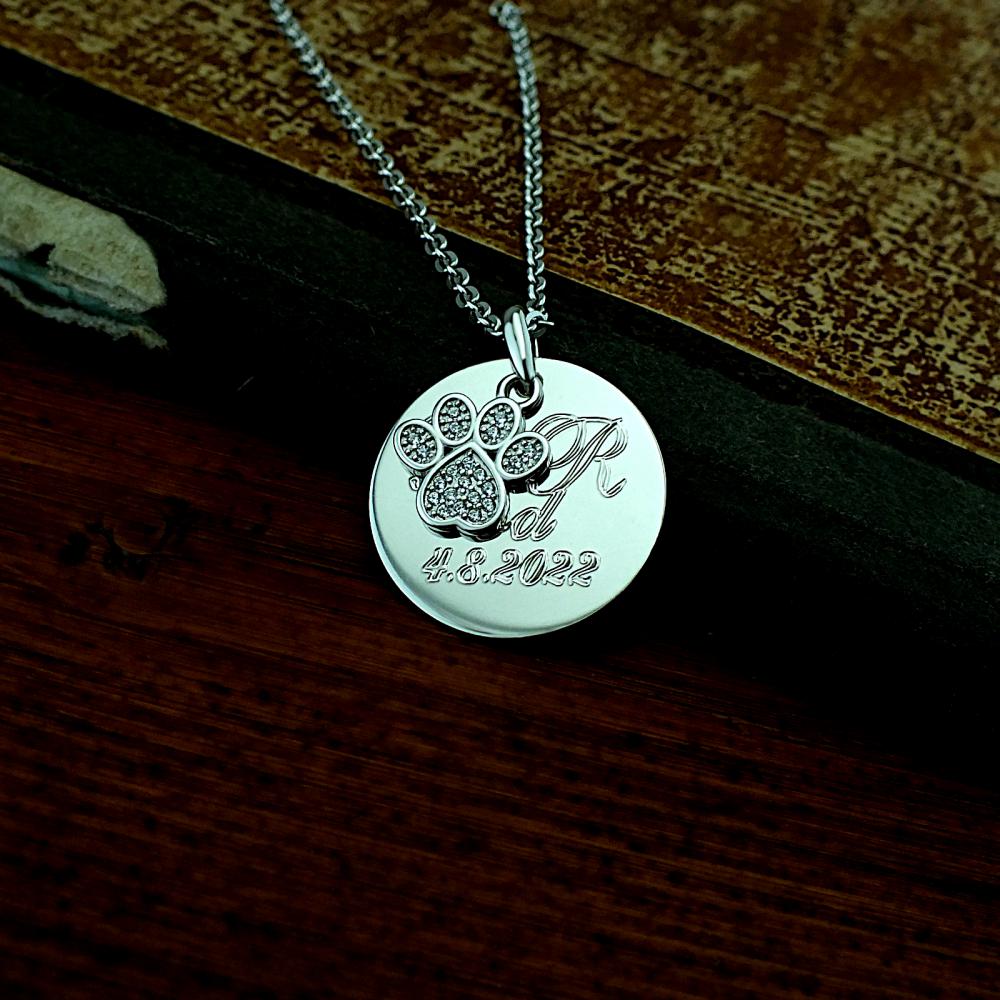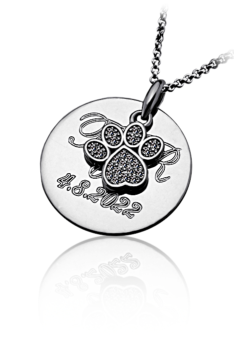 Přívěsek psí tlapka je vyroben ze stříbra v lesklé povrchové úpravě ryzosti 925/1000.