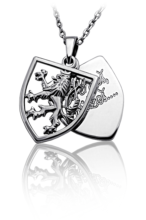Stříbrný přívěsek zdobený českým lvem a hladkou destičkou. Přívěsek je vyrobený ze stříbra ryzosti 925/1000 v lesklé povrchové úpravě. Rytí na destičku je zcela na vás, na fotografii je pouze ilustrativní vzor. Veškeré rytí na destičku je už zahrnuto v ceně přívěsku. Požadovanou rytinu nám napište do poznámky v objednávce (třetí krok v košíku).