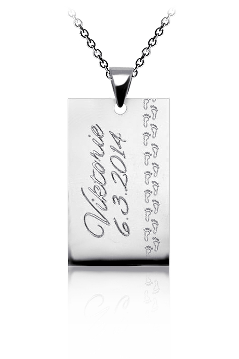 Přívěsek je vyrobený z oceli, v lesklé povrchové úpravě a zdobený vlastním rytím. Rytí jména nebo iniciálu je už v ceně přívěsku. K ocelovému přívěsku je už zahrnut řetízek a dárková krabička na kterou můžeme vyrýt delši věnování. Požadovanou rytinu nám napište do poznámky v objednávce (třetí krok v košíku).