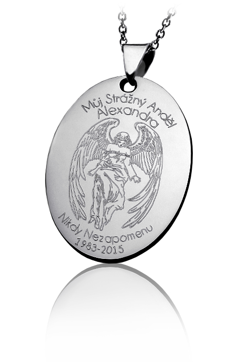 Přívěsek je vyrobený z oceli a zdobený vlastním rytím. Rytí jména nebo iniciálu je už v ceně přívěsku. K přívěsku je už zahrnut řetízek a dárková krabička na kterou můžeme vyrýt delši věnování. Požadovanou rytinu nám napište do poznámky v objednávce (třetí krok v košíku).