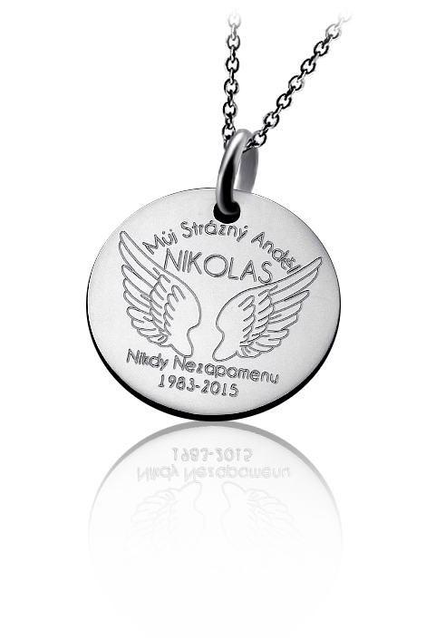 Přívěsek je vyrobený z oceli a zdobený vlastním rytím. Rytí jména nebo iniciálu je už v ceně přívěsku. K přívěsku je už zahrnut řetízek a dárková krabička na kterou můžeme vyrýt delši věnování. Požadovanou rytinu nám napište do poznámky v objednávce (třetí krok v košíku).
