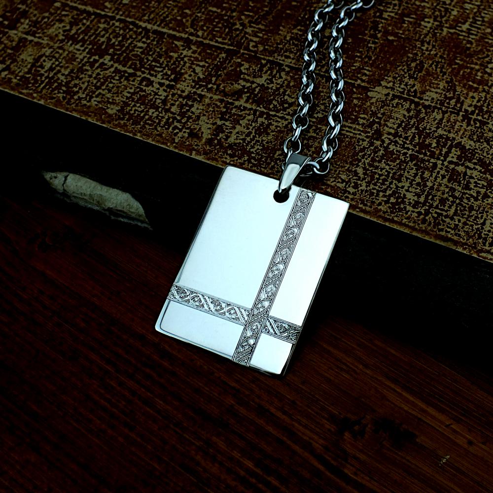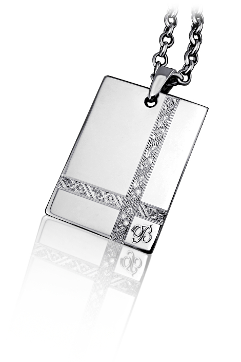 Přívěsek destičky je vyroben ze stříbra v lesklé povrchové úpravě ryzosti 925/1000.