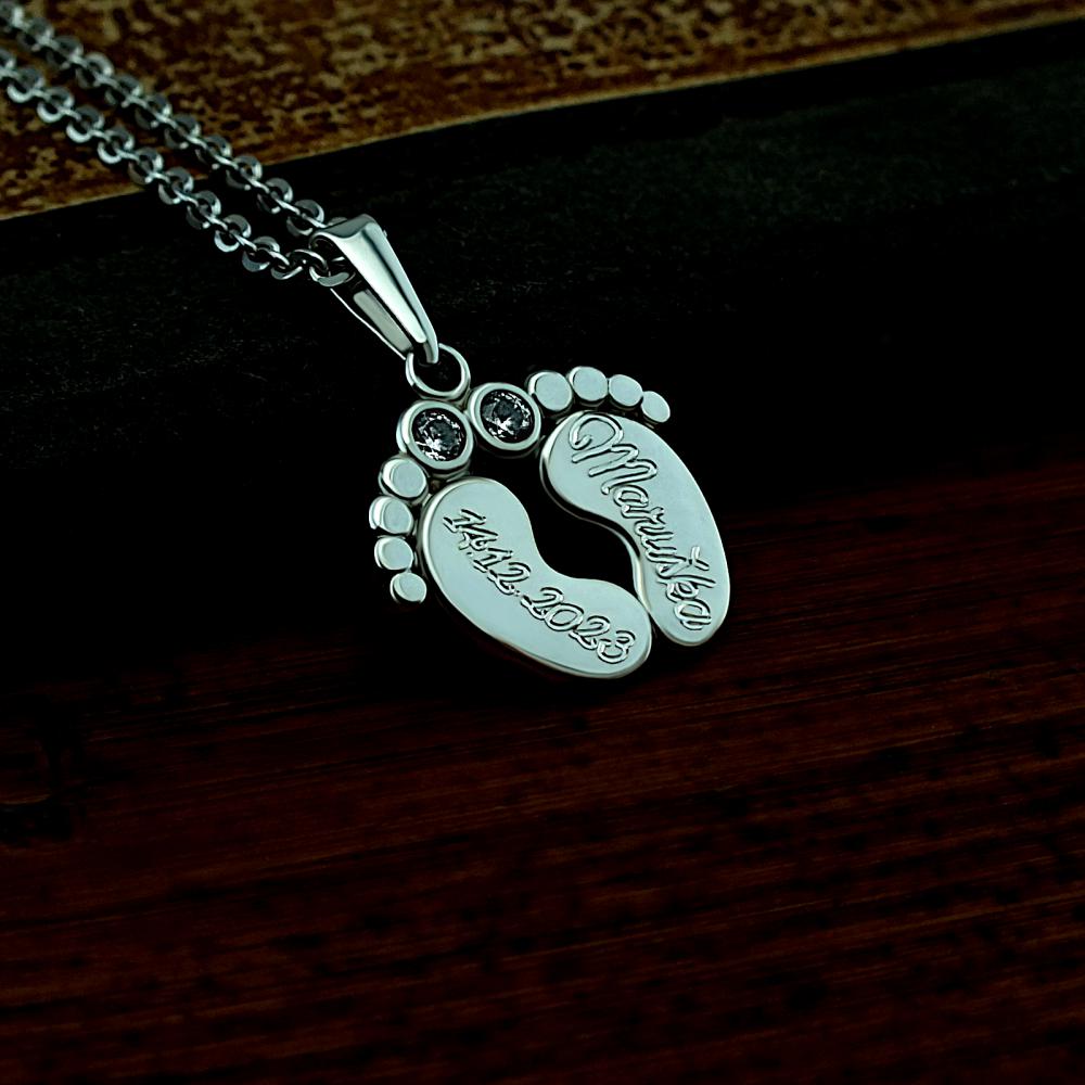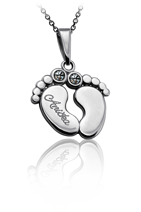 Dětské stopy je elegantní stříbrný přívěsek ryzosti 925/1000 v lesklé povrchové úpravě. V ceně přívěsku je již zahrnuta dárková krabička, na kterou můžeme vyrýt vaše věnování. Na přívěsek je možné vyrýt jméno nebo datum. Požadované rytí na přívěsek a krabičku nám napište do poznámky v objednávce (třetí krok objednávky v košíku).
