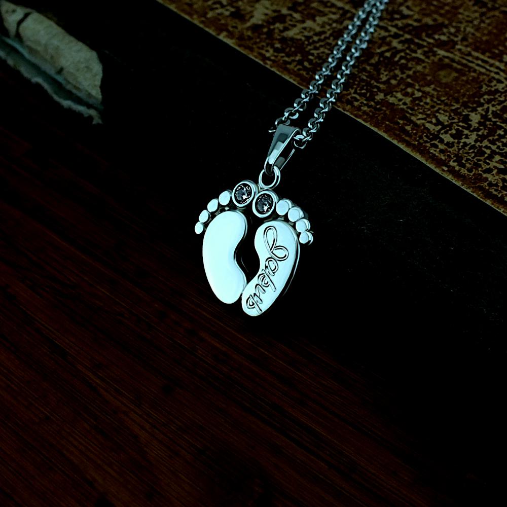 Dětské stopy je elegantní stříbrný přívěsek ryzosti 925/1000 v lesklé povrchové úpravě. V ceně přívěsku je již zahrnuta dárková krabička, na kterou můžeme vyrýt vaše věnování. Na přívěsek je možné vyrýt jméno nebo datum. Požadované rytí na přívěsek a krabičku nám napište do poznámky v objednávce (třetí krok objednávky v košíku).