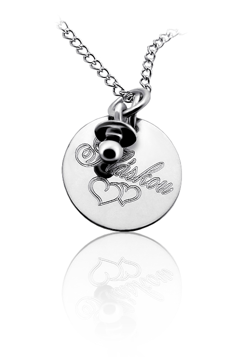 Přívěsek ve tvaru kolečka je vyrobený ze stříbra ryzosti 925/1000 zdobený dudlíke a rytím z jedné strany. Na přední stranu medailonku lze vyrýt písmenko nebo věnování. Stříbrné kolečko s věnováním je už včetně řetízku v délce 50cm. K přívěsku už je zahrnuta dárková krabička na kterou můžeme vyrýt delší věnování. Do poznámky v objednávce nám napište jaké budete chtít rýtí (třetí krok v košíku).