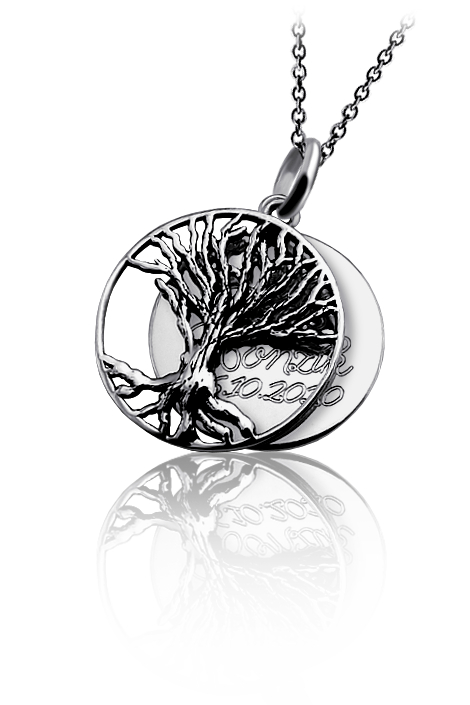 Přívěsek Strom života je elegantní stříbrný přívěsek ryzosti 925/1000 v patinované povrchové úpravě. Symboliku ocení zejména maminky a babičky. V ceně přívěsku je již zahrnuta dárková krabička, na kterou můžeme vyrýt delší text. Na kolečko pod stromečkem je možné vyrýt jména či věnování a to z obou stran. Veškeré rytí je už zahrnuto v ceně přívěsku. Požadované rytí na stromeček a krabičku nám napište do poznámky v objednávce (třetí krok objednávky v košíku).