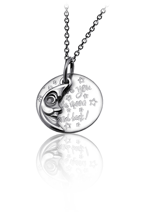 Stříbrný přívěsek zdobený měsícem a kolečkem vyrobený v ryzosti 925/1000. Přívěsek je vyrobený ze stříbra v lesklé povrchové úpravě. Rytí na kolečku je poze ilustrativní a je možné ho změnit. Požadovanou rytinu nám napište do poznámky v objednávce ( třetí krok v košíku ).
