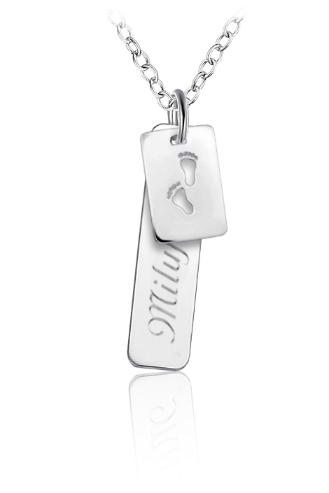 Stříbrný přívěsek zdobený stopami a hladkou destičkou. Přívěsek je vyrobený ze stříbra ryzosti 925/1000 v lesklé povrchové úpravě. Rytí na destičku je zcela na vás, na fotografii je pouze ilustrativní vzor. Na zadní stranu můžeme vyrýt další text dle vašeho přání. Veškeré rytí na destičku je už zahrnuto v ceně přívěsku. Požadovanou rytinu nám napište do poznámky v objednávce ( třetí krok v košíku ).