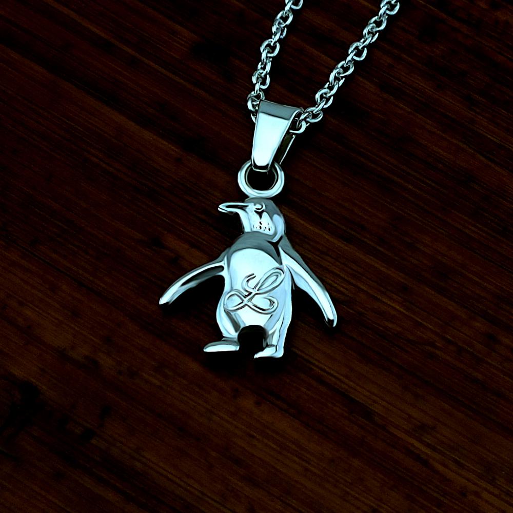 Přívěsek tučňáka vyrobený ze stříbra ryzosti 925/1000 v leklé povrhové úpravě. Rytí vašeho písmenka je už v ceně stříbrného přívěsku. Můžete si zvolit lesklé rytí nebo nechat tučňáčka patinovat (prohlubně budou začerněné). Požadovanou rytinu nám napište do poznámky v objednávce (třetí krok v košíku).