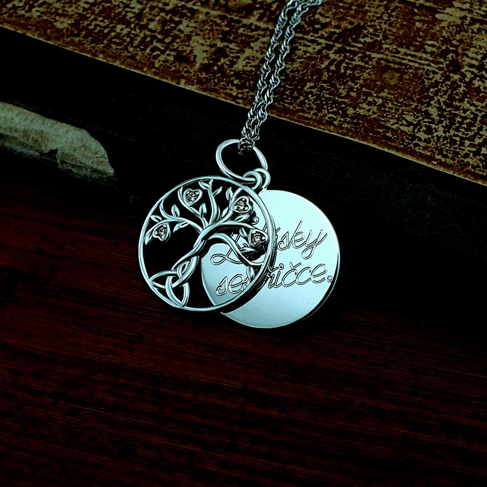Dámský přívěsek Strom života je elegantní stříbrný přívěsek ryzosti 925/1000 v lesklé povrchové úpravě. Symboliku ocení zejména nastávající maminky a babičky. V ceně přívěsku je již zahrnuta dárková krabička, na kterou můžeme vyrýt delší text. Na kolečko pod stromečkem je možné vyrýt jména či věnování a to z obou stran. Požadované rytí na stromeček a krabičku nám napište do poznámky v objednávce (třetí krok objednávky v košíku).