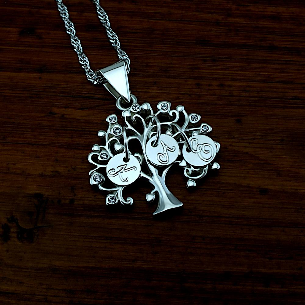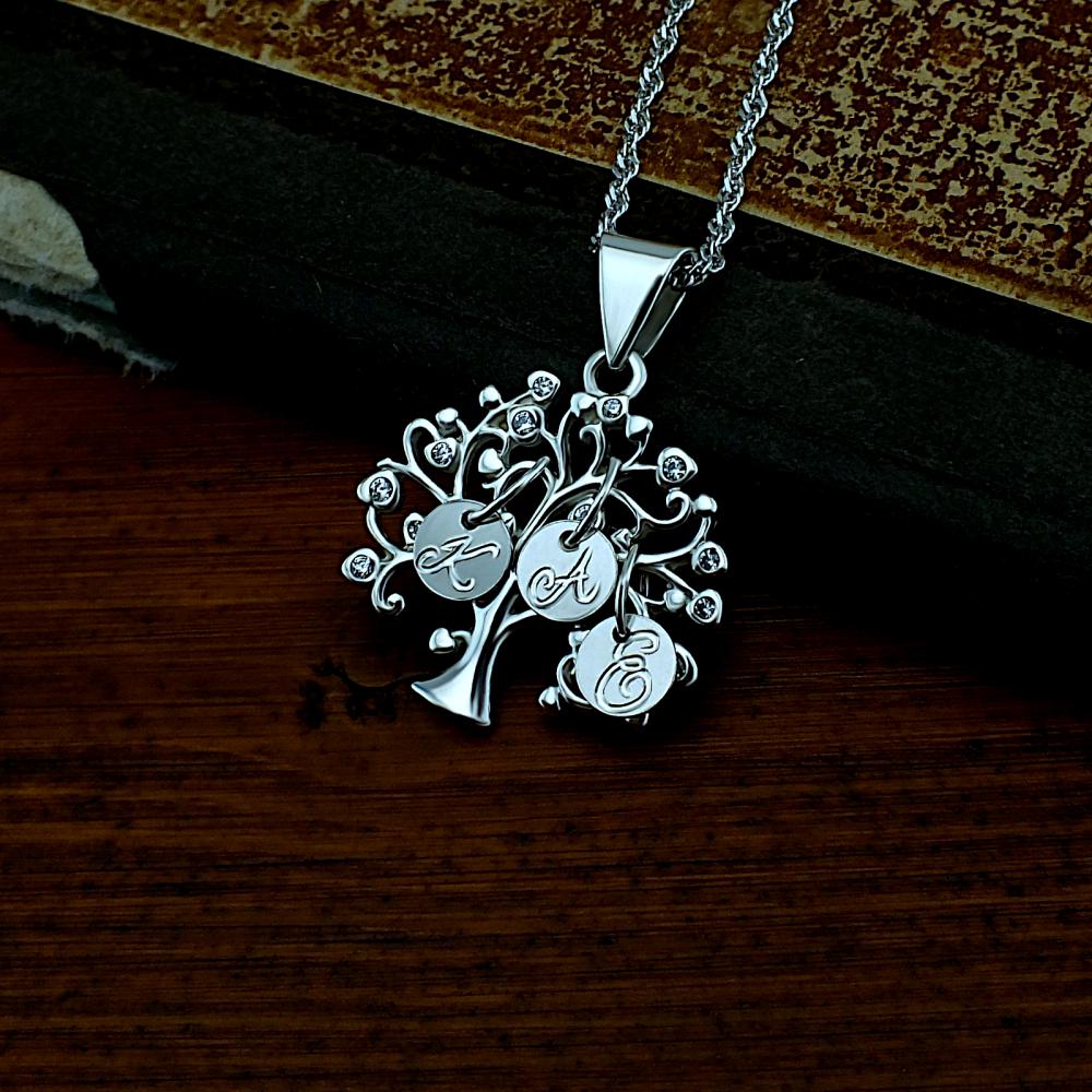 Přívěsek strom života je vyrobený ze stříbra, zdobený zirkony a písmenky dle vašeho přání. Elegantní stříbrný přívěsek pro maminku nebo babičku je vyroben v lesklé povrchové úpravě ryzosti 925/1000. K přívěsku už je zahrnuta dárková krabička na kterou můžeme vyrýt vaše věnování. Požadované rytí nám napište do poznámky v objednávce ( třetí krok v košíku )