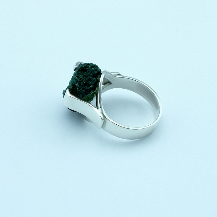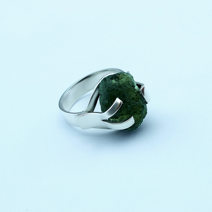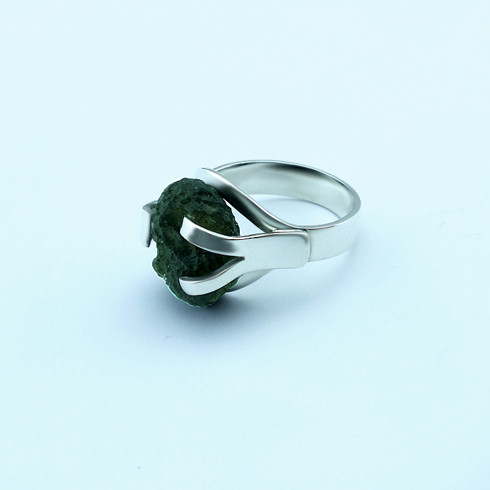 Ručně vyráběný, dámský prsten ze stříbra v lesklé povrchové úpravě osazený českým vltavínem. Vltavín je v přírodním tvaru, nebroušený. Fotogafie jsou pouze ilustrativní ukázkou už hotových prstýnků. Prsten vyrábíme ve všech velikostech a třech materiálu, žluté zlato, bílé zlato a stříbro. Cena stříbrného prstenu je odvozena od ceny vltavínu. Velikost prstenu nám napište do poznámky v objednávce.