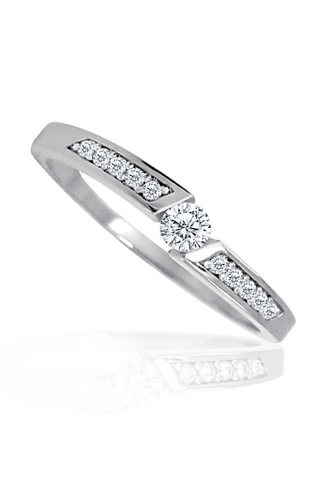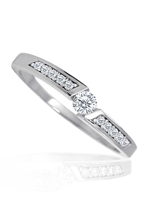 Zásnubní prsten vyroben z bílého čtrnácti karátového zlata ryzosti 585/1000, v lesklé povrchové úpravě s bílými zirkony. Jeden kulatý středový kámen a 10 postraních zirkonů. Váha prstenu je 1,70 g pro velikost 56. Prstýnek vyrábíme ve všech velikostech. K prstýnku už je zahrnuta krabička na kterou můžeme vyrýt věnování. Rytí a velikost prtenu nám napište do poznámky v objednávce ( třetí krok v košíku ).