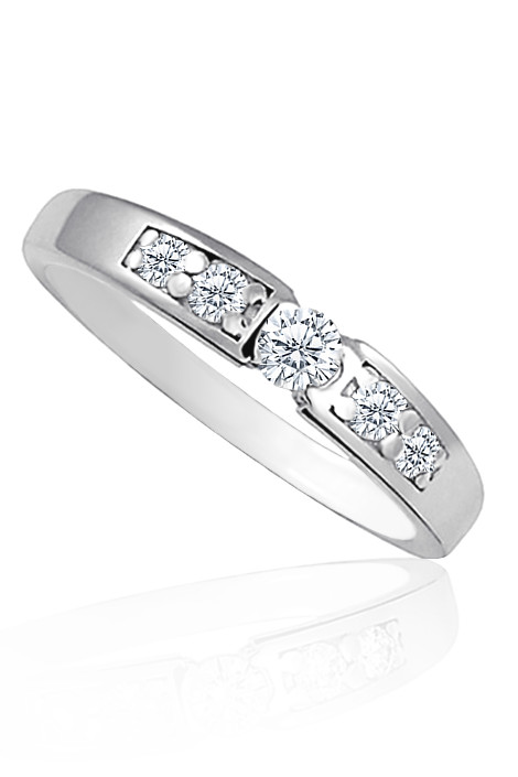 Zásnubní prsten vyroben z bílého čtrnácti karátového zlata ryzosti 585/1000, v lesklé povrchové úpravě s bílými zirkony. Jeden kulatý středový kámen a 4 postraní zirkony. Váha prstenu je 1,95 g pro velikost 58. Prstýnek vyrábíme ve všech velikostech. K prstýnku už je zahrnuta krabička na kterou můžeme vyrýt věnování. Rytí a velikost prtenu nám napište do poznámky v objednávce ( třetí krok v košíku ).